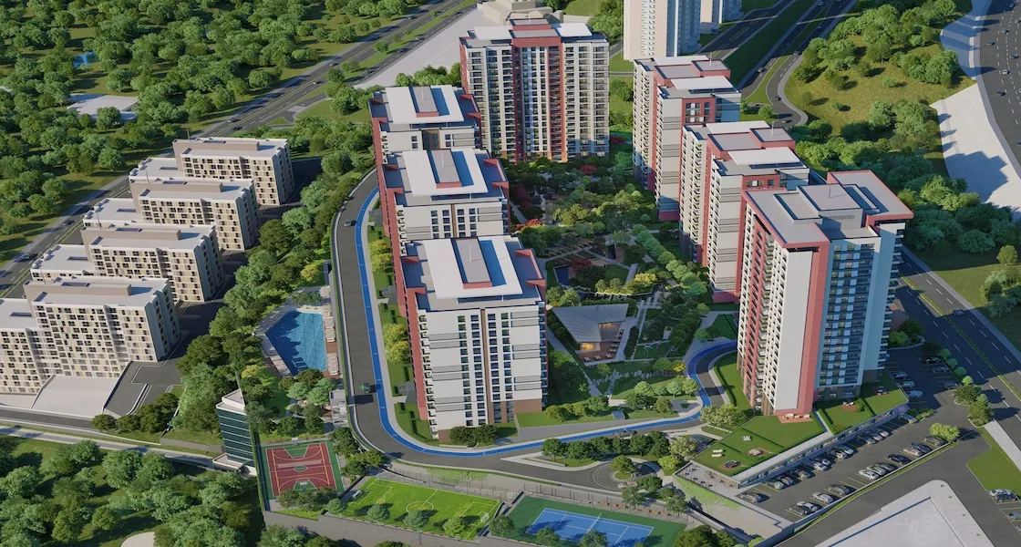 تم بناء المشروع على ارض تبلغ مساحتها 45000 متر مربع وهو مكون من 7 ابنية او كتل سكنية بارتفاع 20 طابق ، بحيث يبلغ عدد الشقق الاجمالي فيه 744 شقة او عقار سكني ، تتواجد فيه حالياً خيارات من الشقق تبدأ من 1+1 ولغاية 4+1 بمساحات تبدأ من 85 ولغاية 218 متر مربع , كما ان بعض الشقق تتمتع بأطلالة على الغابة .