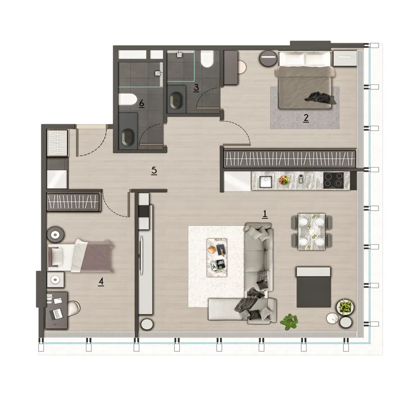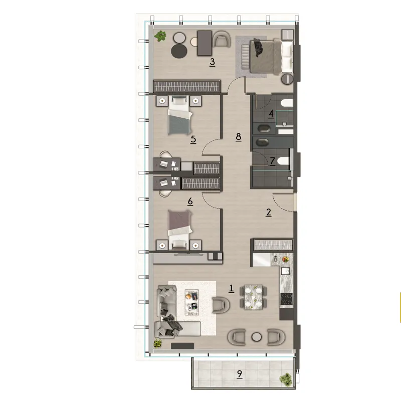 | الانماط | الغرف | الصالات | المساحة | السعر | مخطط الشقة |