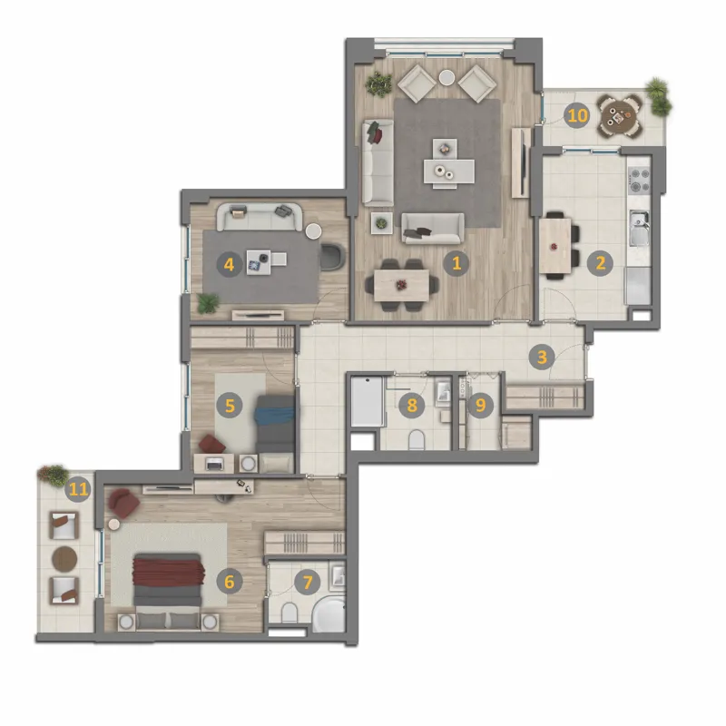 | الانماط | الغرف | الصالات | المساحة | السعر | مخطط الشقة |