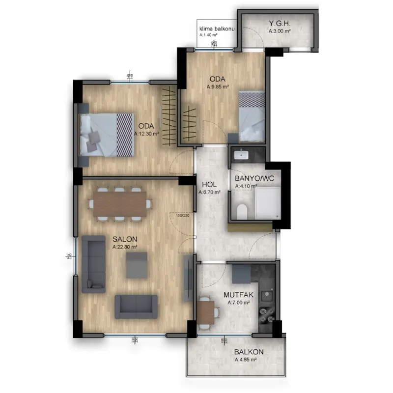 2 | 1 | 84 - 90 م² | 330,000 usd |