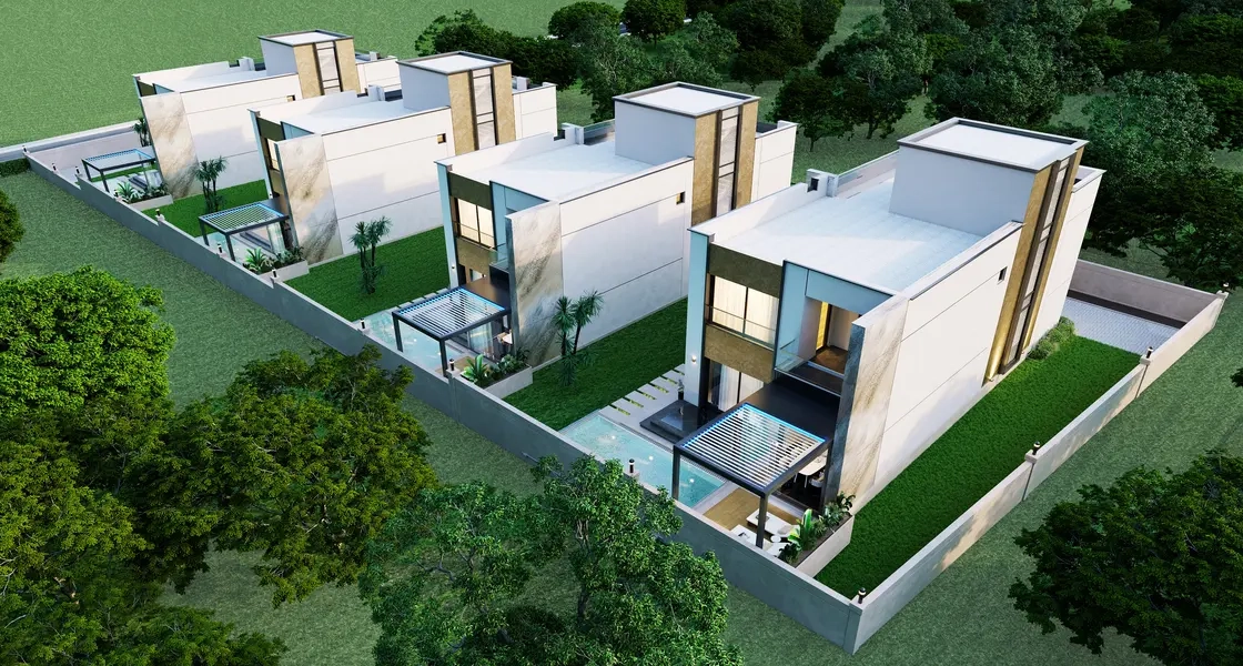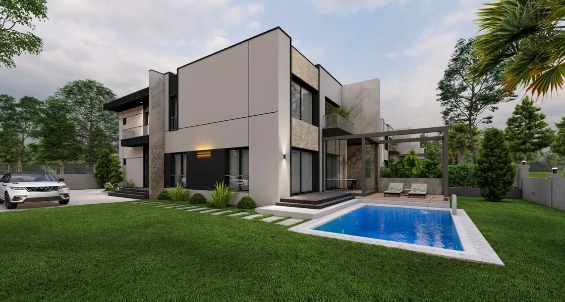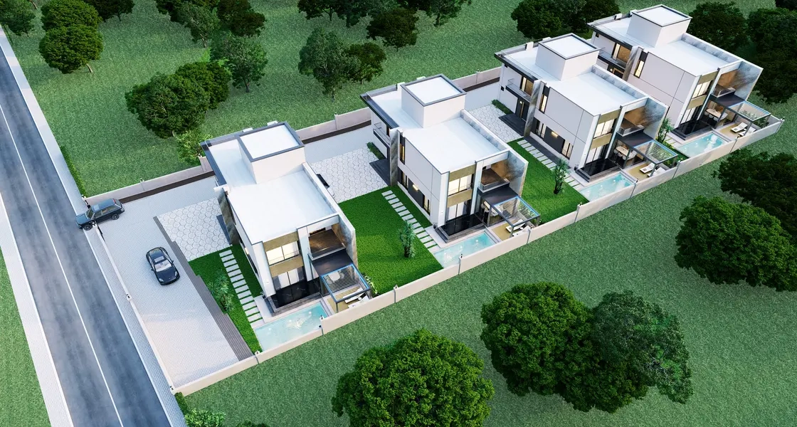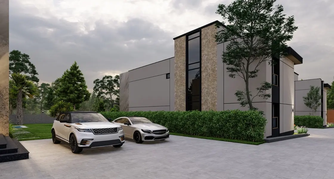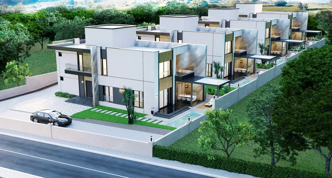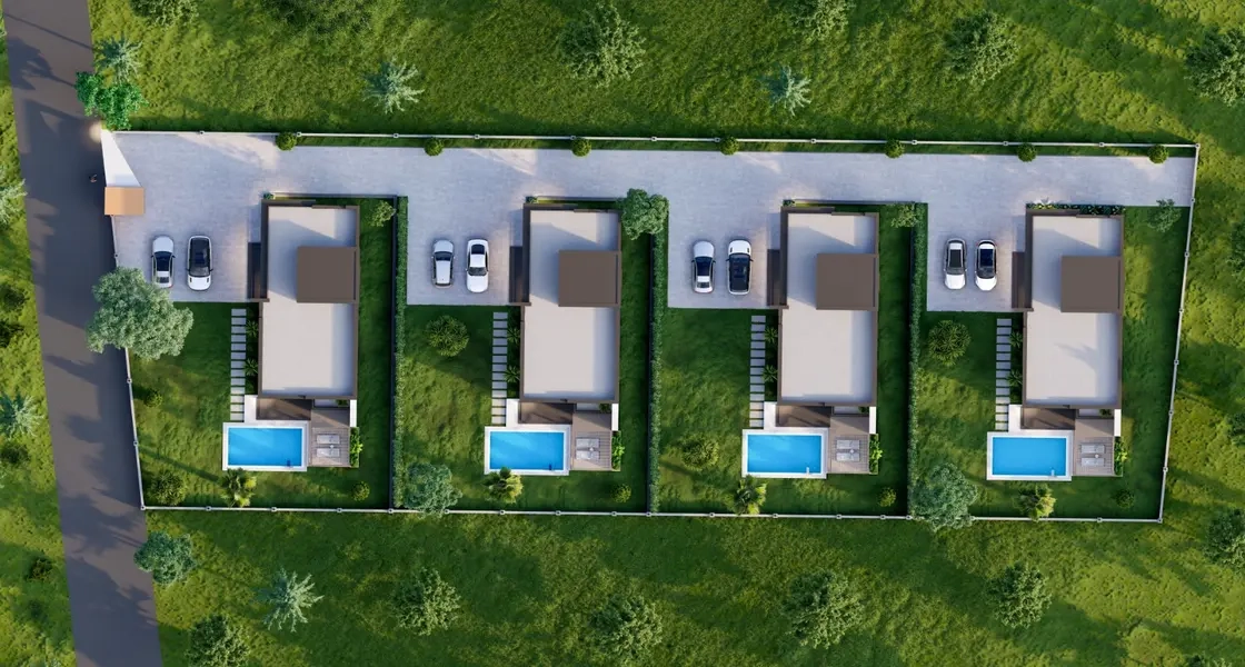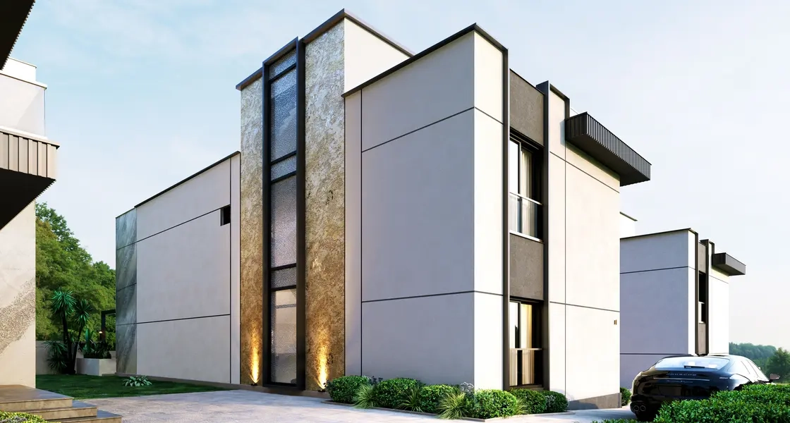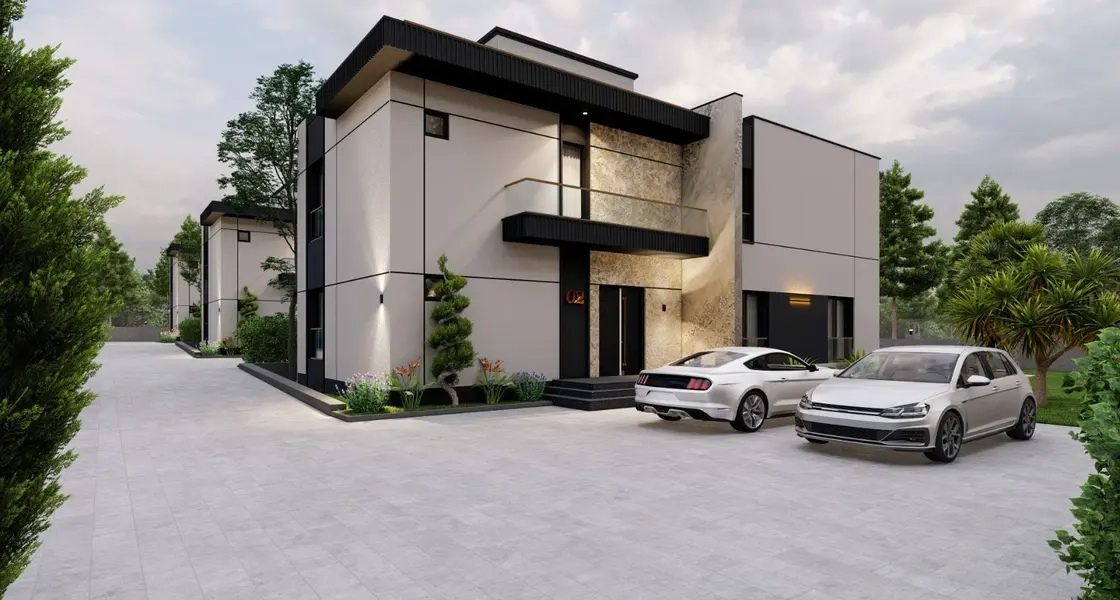 تم بناء المشروع على ارض تبلغ مساحتها 2043 متر مربع ، وهو مكون من 4 فلل سكنية مستقلة من طابقين ، بنمط 4+1 ومساحة 410 متر مربع .