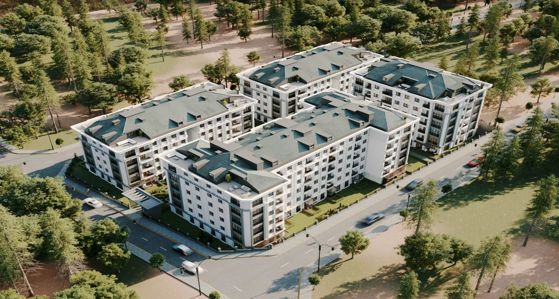 تم بناء المشروع على مساحة أرض 6800 متر مربع، ويتكون من 10 أبنية على ارتفاع 4 طوابق، عدد الوحدات السكنية إلى 110 وحدات سكنية وتتواجد فيه حاليا خيارات من العقارات تبدأ من 2 + 1 ولغاية 5 + 1 بمساحات تبدأ من 102 متر مربع ولغاية 248 مترا مربعا