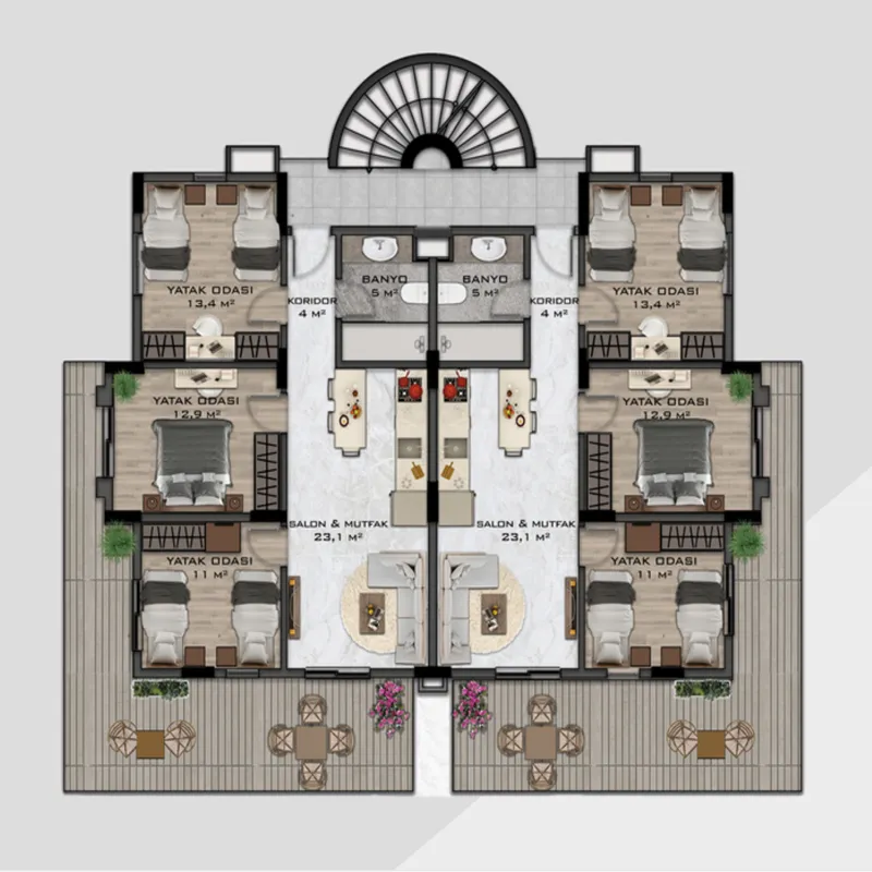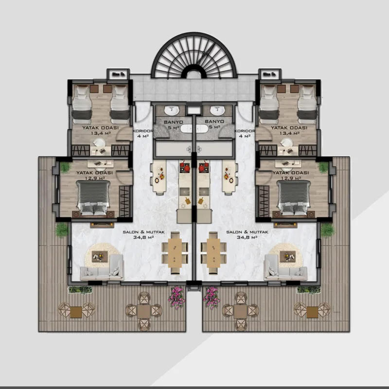 يقع المشروع في بودروم في محافظة موغلا ، تم بناءه على ارض تبلغ مساحتها 66000 متر مربع ، وهو مكون من 56 ابنية او كتل سكنية بارتفاع 4 طوابق لكل بناء ، بحيث يبلغ عدد الشقق السكنية فيه 568 شقة سكنية معروضة للبيع في بودروم بخيارات تبدأ من 1+1 ولغاية 3+1 وبمساحات تبدأ من 62 ولغاية 122 متر مربع . يبعد المشروع 25 دقيقة عن كل من مطار Milas و الطريق السريع D330 .