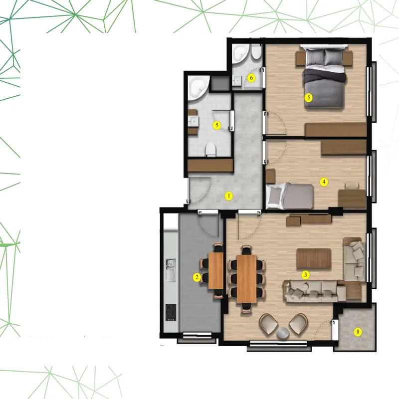 | الانماط | الغرف | الصالات | المساحة | السعر | مخطط الشقة |