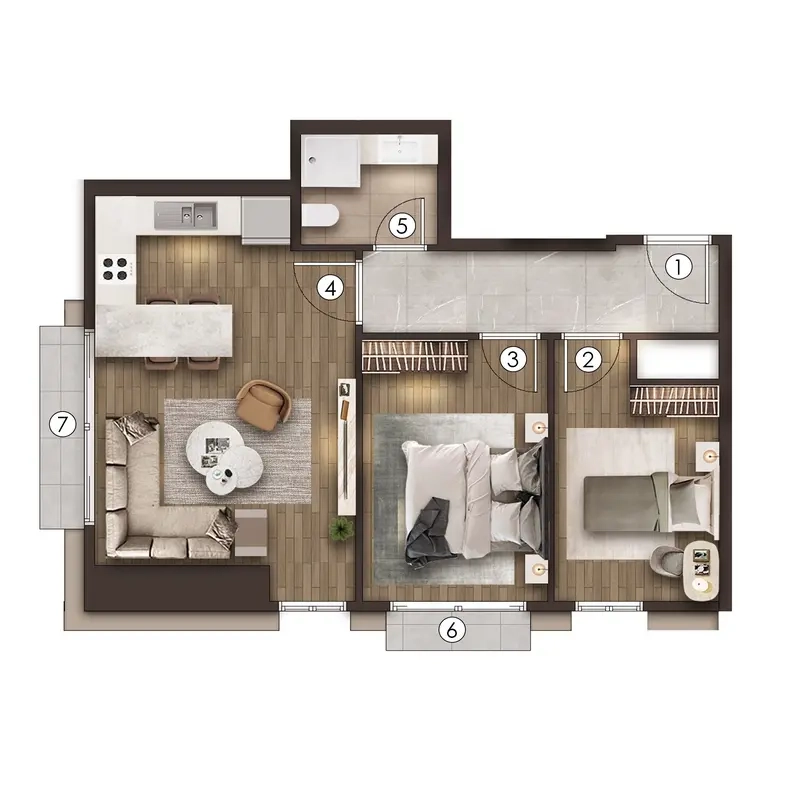 2 | 1 | 110 - 112 م² | 645,000 - 706,000 usd |