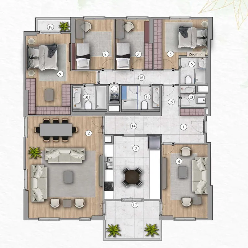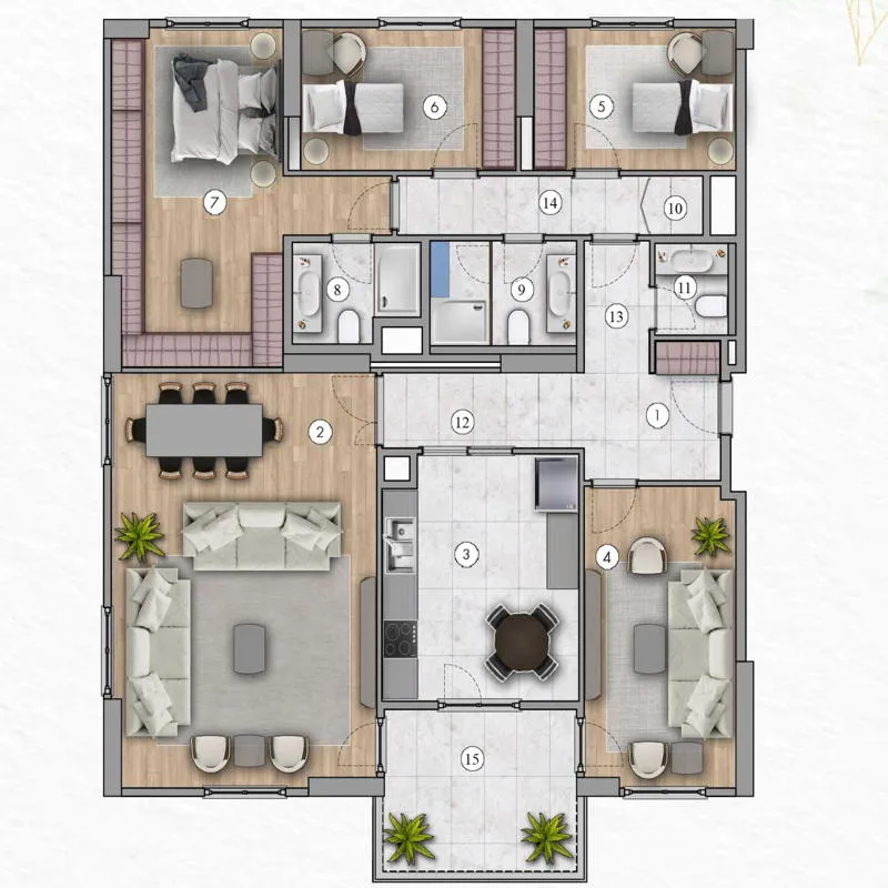 | الانماط | الغرف | الصالات | المساحة | السعر | مخطط الشقة |