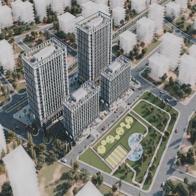 تم بناء هذا المشروع على ارض تبلغ مساحتها 12000 متر مربع وهو مكون من 4 ابنية او كتلة سكنية ، يتكون المبنيان الأماميان من 8 طوابقد، بينما يتكون المبنيان الآخران من 16 طابقًا ، بالإضافة إلى 3 طوابق لوقوف السيارات ، يوفر هذا المشروع 576 وحدة سكنية / 22 وحدة تجارية معروضة للبيع في اسطنبول ، تتوفر فيه خيارات تبدأ من 1+1 ولغاية 2+1 بمساحات تبدأ من 62 ولغاية 101 متر مربع .