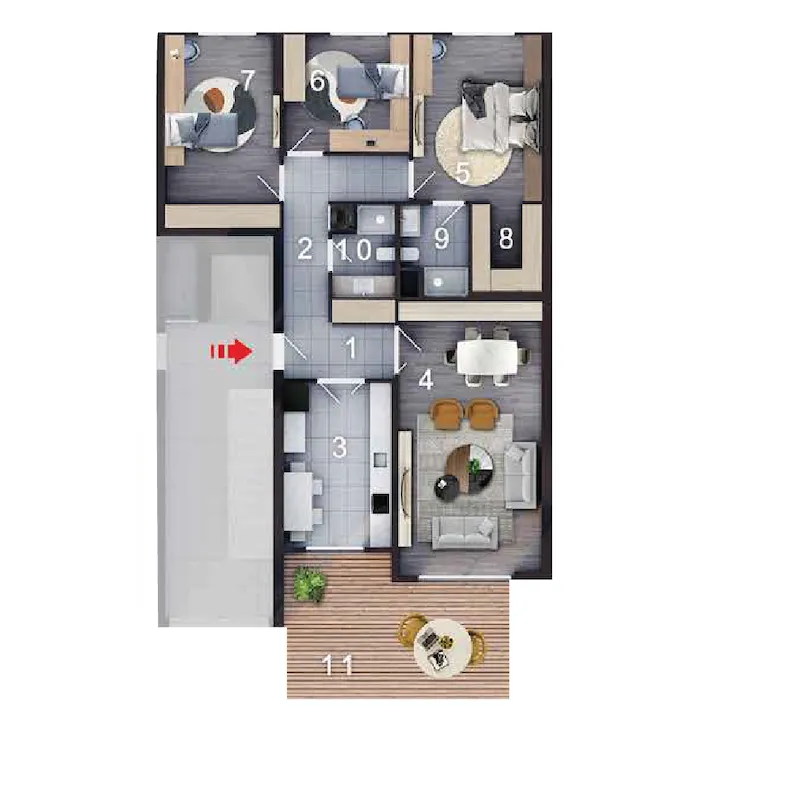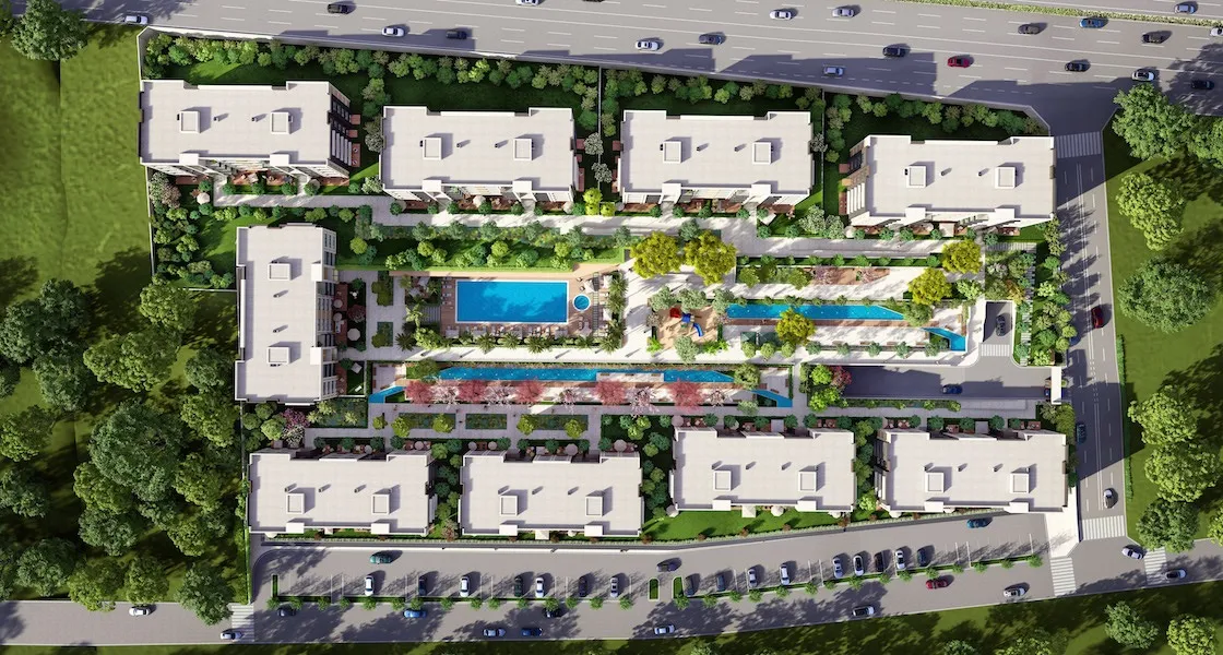 تم بناء المشروع على ارض تبلغ مساحتها 23540 متر مربع منها 15000 متر مربع مخصصة للمساحات الخضراء ، وهو مكون من 9 ابنية او كتل سكنية بأرتفاع 5 طوابق لكل بناء ، يحتوي المشروع على عدد اجمالي من الشقق بحدود 43 عقار او شقة سكنية و 27 محل تجاري ، ويوفر خيارات متعددة من الشقق تبدأ من 2+1 ولغاية 4+1 بمساحات تبدأ من 32 ولغاية 200 متر مربع . مشروع يفتح لك افاق جديدة للاستمتاع بكل لحظة تعيشها في مسكنك الواسع وانت مرتاح البال مع عائلتك ، مشروع بما يقدمة من خيارات ومساحات يجعله المرغوب من قبل جميع الفئات .