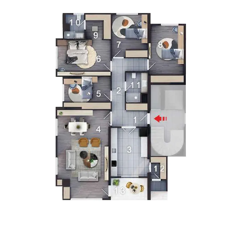| الانماط | الغرف | الصالات | المساحة | السعر | مخطط الشقة |