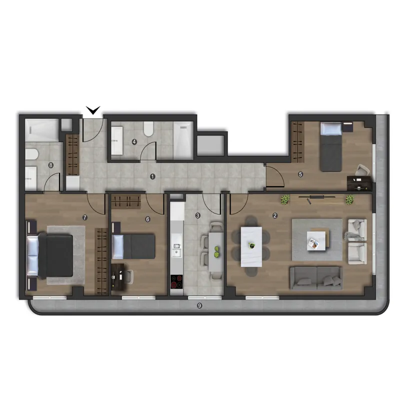 | الانماط | الغرف | الصالات | المساحة | السعر | مخطط الشقة |