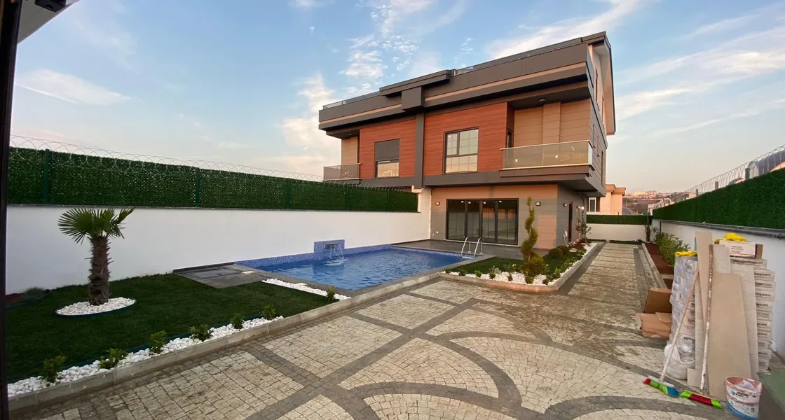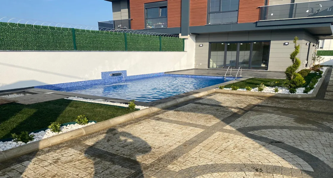 للبيع فيلا مستقلة بيلكدوزو كوربينار 5 + 2 المساحة 340 متر مربع حوض سباحة منفصل حمام تركي، ساونا، جاكوزي حمام في جميع الغرف مكيف هواء ونظام كاميرا