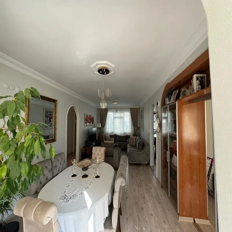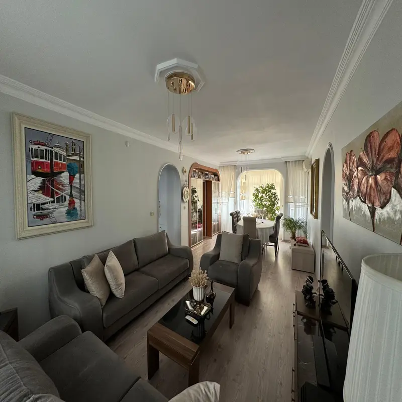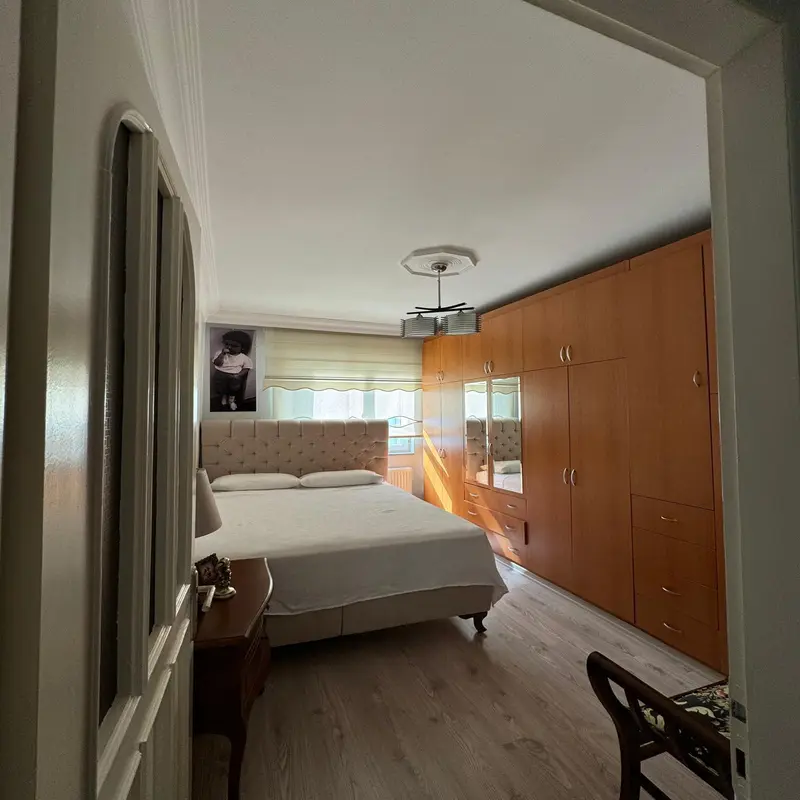 شقة للبيع ضمن مجمعات منطقة اسنيورت بإسطنبول ، نمط الشقة 3+1 ( ثلاث غرف نوم وصالة ) ، تبلغ المساحة الإجمالية للشقة 135 متر مربع، يتم تسليمها مباشرة عند الشراء ، تقع في الطابق الثاني ، تحوي على 2 حمام و 1 بالكونة ومطبخ مغلق .