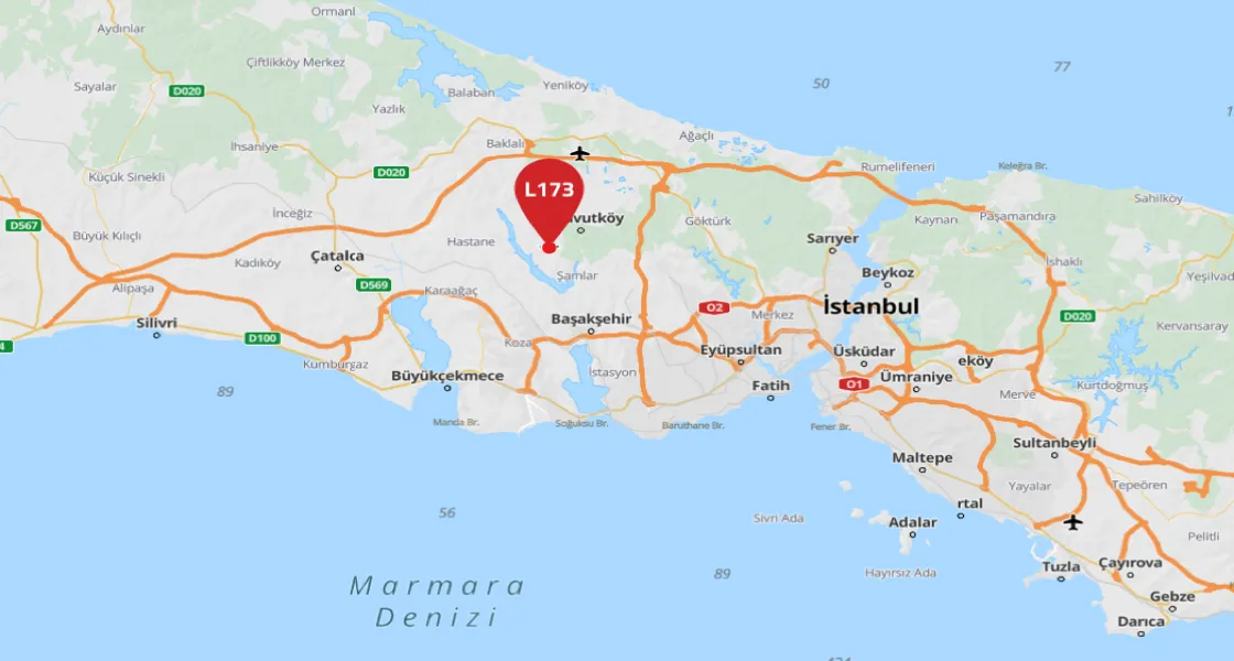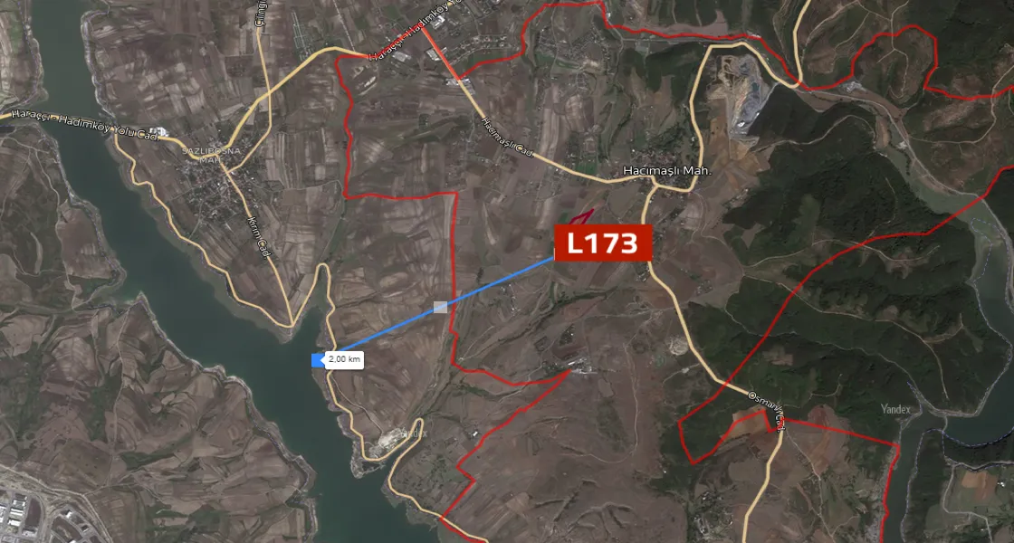 For sale, a plot of land of 1742 square meters, distinguished by its proximity to the new Istanbul Canal, in the Arnavutkoy area, specifically Hacımaşlı.