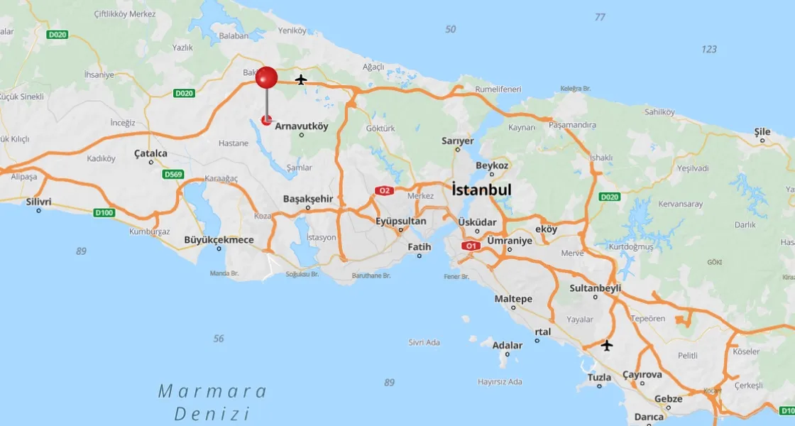 For sale, a plot of land with an area of 7000 square meters, distinguished by its proximity to the new Istanbul Canal in the Arnavutkoy region, specifically Çilingir.