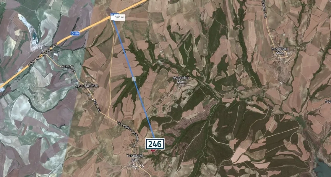 For sale : Agricultural land with area 11625 square meters in Tekirdağ, specifically in Süleymanpaşa.