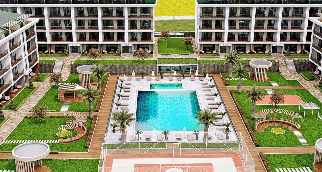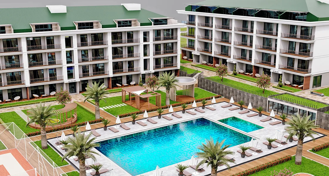 The project was built on a land area of 24,000 square meters, and it consists of 7 buildings or residential blocks with a height of 4 floors for each building. The project contains a total of 160 apartments, in which there are options of residential real estate starting from 2 + 1 to 5 + 2 with spaces starting From 95 to 276 square meters.