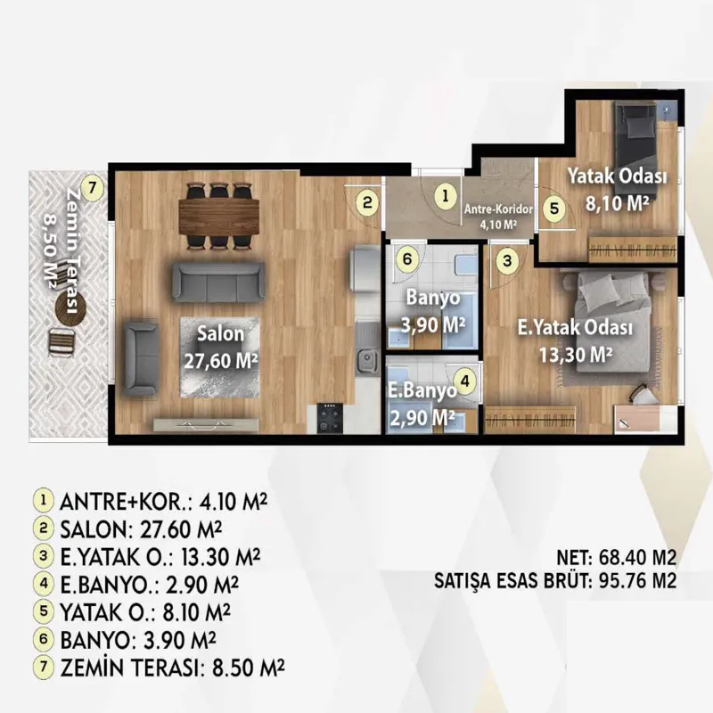 The project, which is located in one of the most oxygen-rich areas of the city, is implemented with multiple apartment options created in spacious and modern living spaces combined with quality.