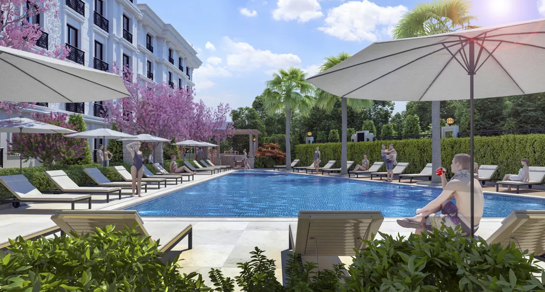 The project provides an ideal environment for those who are interested in socializing and exercising with an outdoor swimming pool, fitness gym, Turkish bath and sauna, two children's playgrounds, 24/7 security and guarding, a generator, and an indoor car park that can accommodate 86 vehicles.