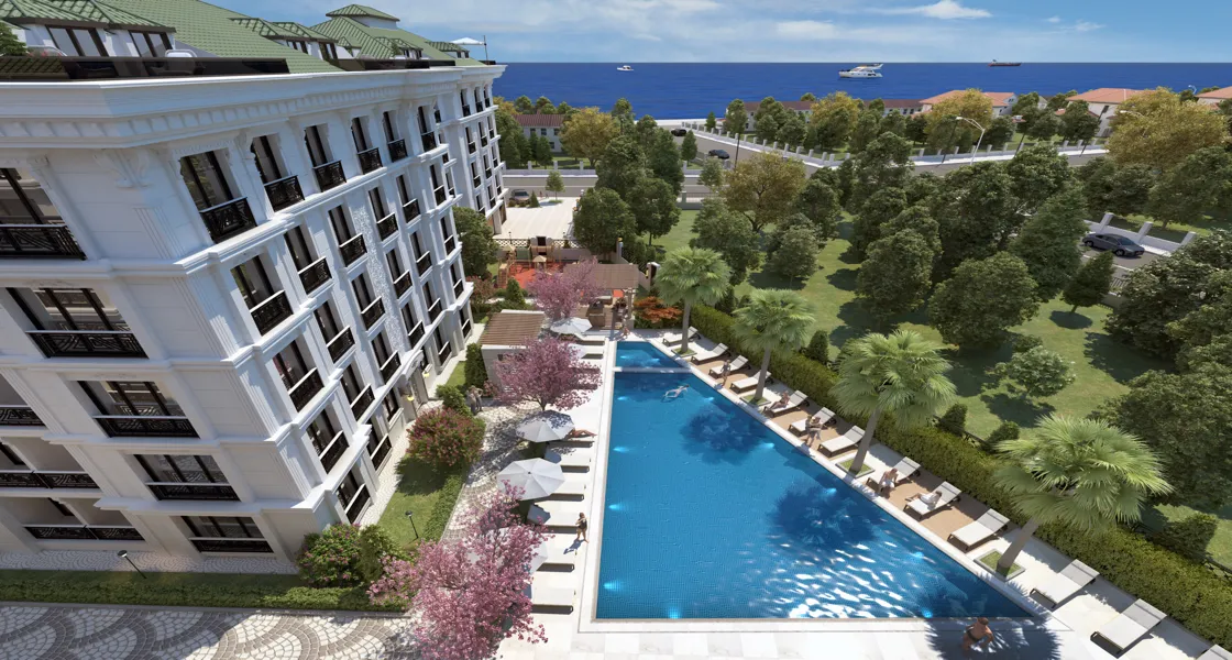 This residential project is located in the Büyükçekmece area, which has an increasing investment value on the European side of Istanbul, where you can live a quiet life in front of the seaside, a safe life in which the blue color is not absent from the windows intertwined with nature, which is a two-minute walk from the beach The project offers apartments for sale in Istanbul with multiple options and spaces.