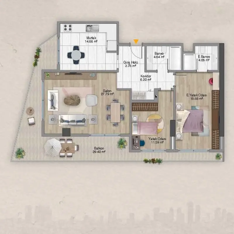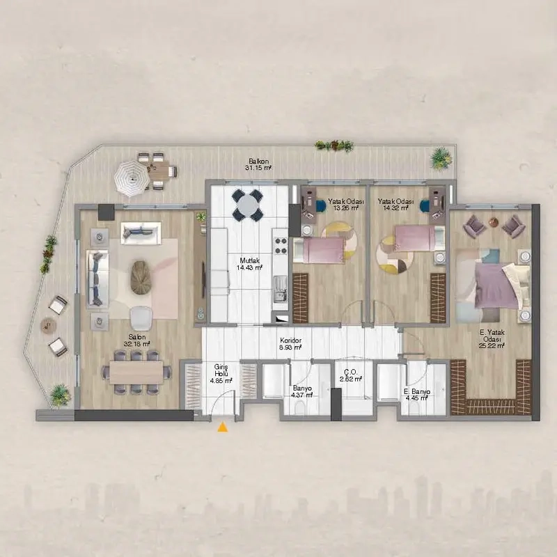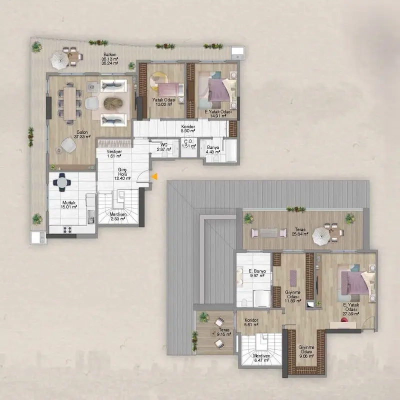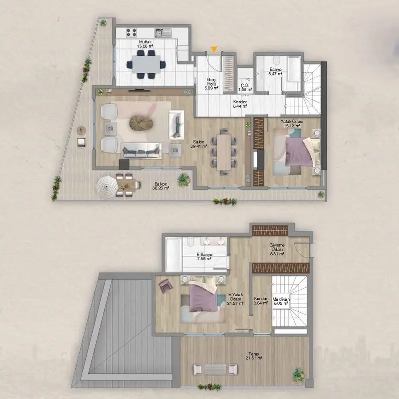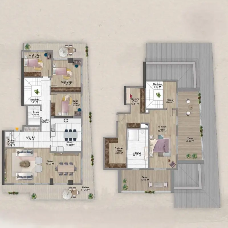 The project is located in the Şişli area, which is considered one of the most vibrant and central regions in Istanbul, providing residents and visitors with easy access to numerous business, shopping, and cultural facilities. The area is renowned for its proximity to significant cultural landmarks, neighboring prominent districts such as Beyoğlu, Beşiktaş, and Istanbul Valley, making the project an ideal opportunity for investment and living. The project spans an area of 6,000 square meters and consists of four buildings, each with five floors. These buildings contain 127 residential units and 17 commercial shops, offering a variety of living options ranging from one-bedroom apartments (1+1) to four-bedroom apartments (4+1), with sizes starting from 55 square meters and reaching up to 440 square meters. The project also includes options for regular and duplex apartments, with all units featuring private balconies that allow residents to enjoy the outdoors. Additionally, the project has two floors dedicated to parking and charging stations for electric vehicles, reflecting its commitment to sustainable technology.