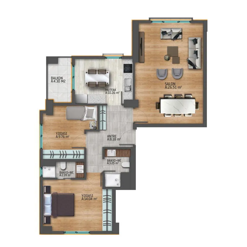 The project was built on a land area of 12,000 square meters and it consists of 6 buildings or residential blocks with a height of 15 floors, so that the total number of apartments in this project is 275 apartments offered for sale in Istanbul, it provides options of apartments starting from 2 + 1 up to 3 + 1, with areas ranging from 89 to 123 square meters.