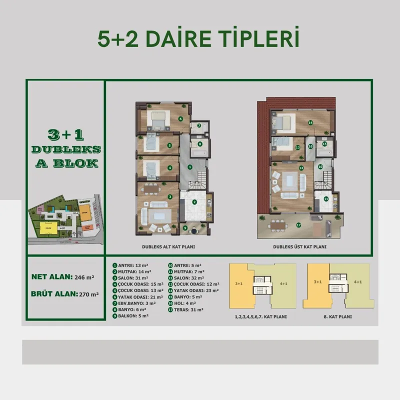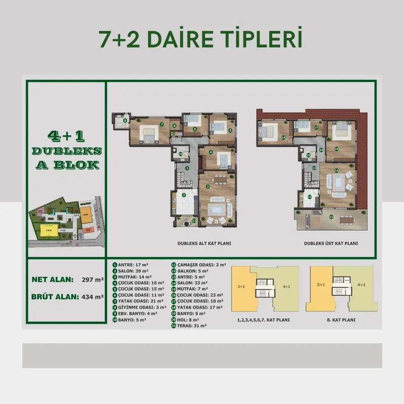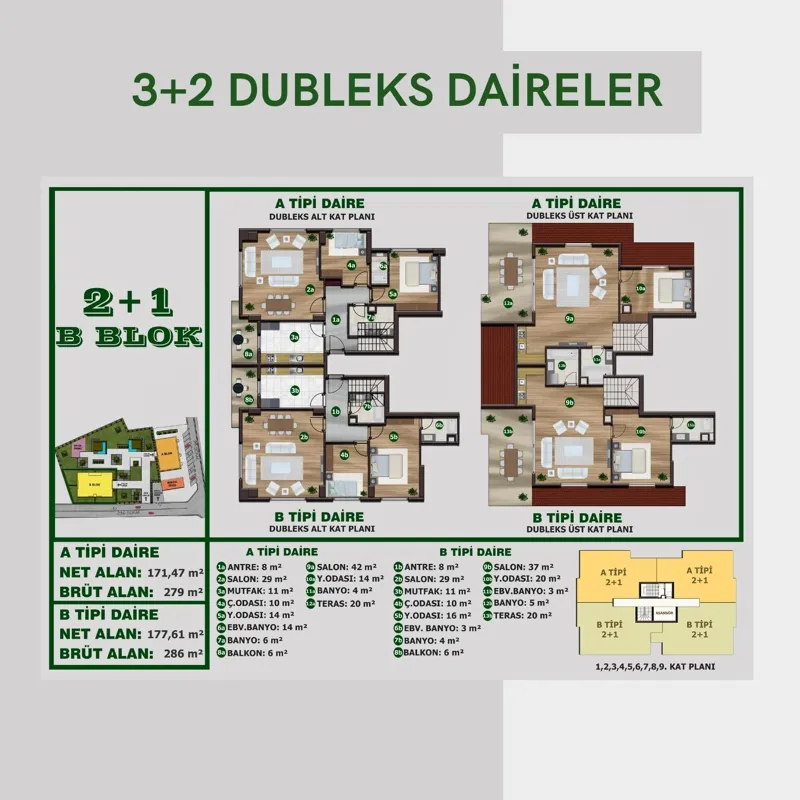 The project is located in Beylikduzu on the European side of Istanbul, it was built on a land of 5000 square meters, and it consists of 2 buildings or residential blocks with a height of 7 and 10 floors, so that the number of apartments in it is 54 apartments offered for sale with options Starting from 2+1 up to 7+2, with areas ranging from 139 up to 410 square meters, there are options for duplex apartments for sale in Beylikduzu.