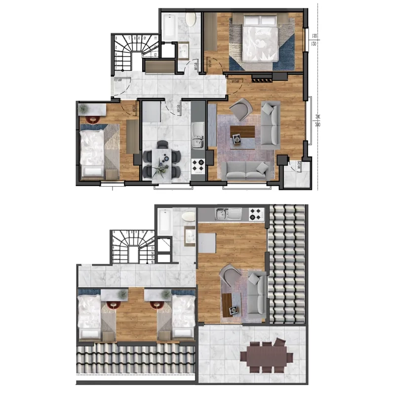 Enjoy beautiful views of the forests in a project offering duplex apartments for sale in Bursa, specifically in Nilüfer