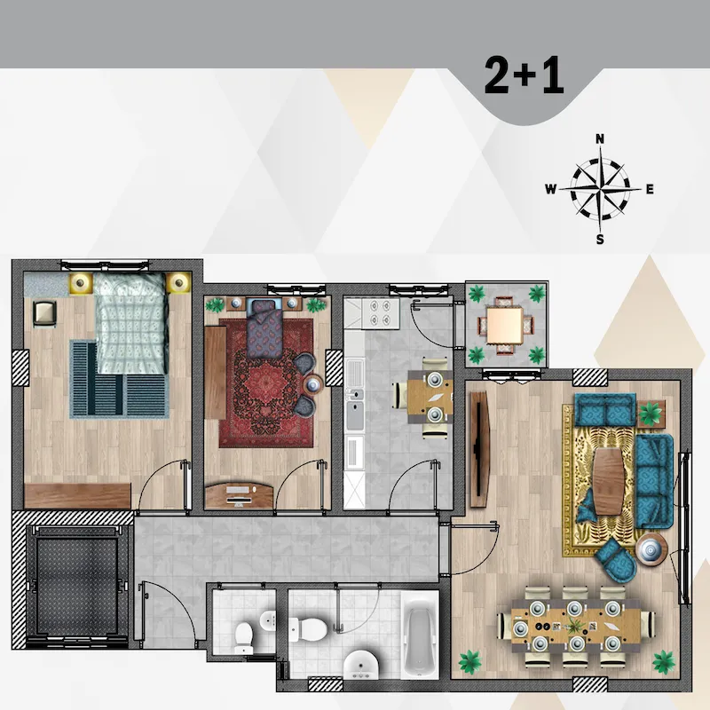 The project was built on a land area of 1,500 square meters, and it consists of one building or residential block with a height of 2 floors, so that the total number of apartments in it is 36 apartments or residential property, in which there are currently options of apartments 2 + 1 with areas ranging from 100 to 120 square meters.