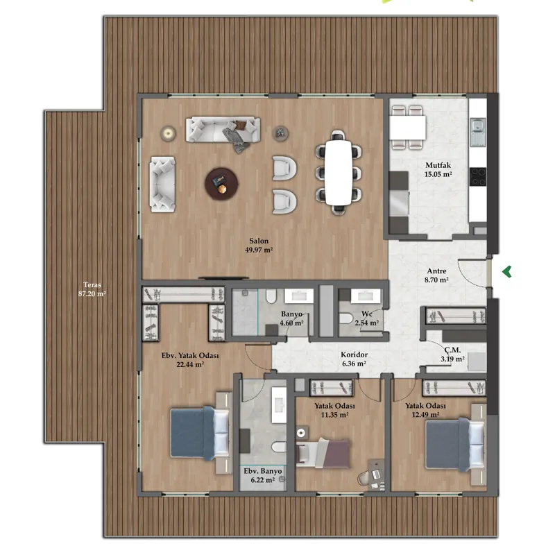 The project is being built in the Maslak area and between the forests of Belgrade, which is the largest forest area in Istanbul from the European side, through its location among the forests, it will provide you with an environment and views of the most beautiful and wonderful. It will offer you a unique experience with its central location, smart design and living space. It was designed on the basis of modern architecture design, with all technological possibilities, merging with nature. Surrounded by the forest, the project hosts every shade of green in itself. This way, green will be more than just a color for you.
