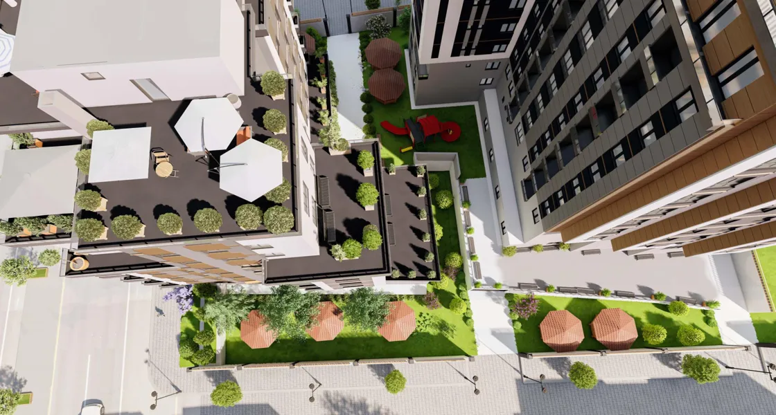 The project was built on a land area of 3535 square meters, and it consists of 2 buildings or residential blocks with a height of 12 floors. This residential project offers its investors and home buyers 150 apartments for sale and 8 commercial stores that meet the needs of the residents. Apartments are available in apartment styles. It starts from 2 + 1 to 3 + 1, with areas ranging from 115 to 235 square meters.