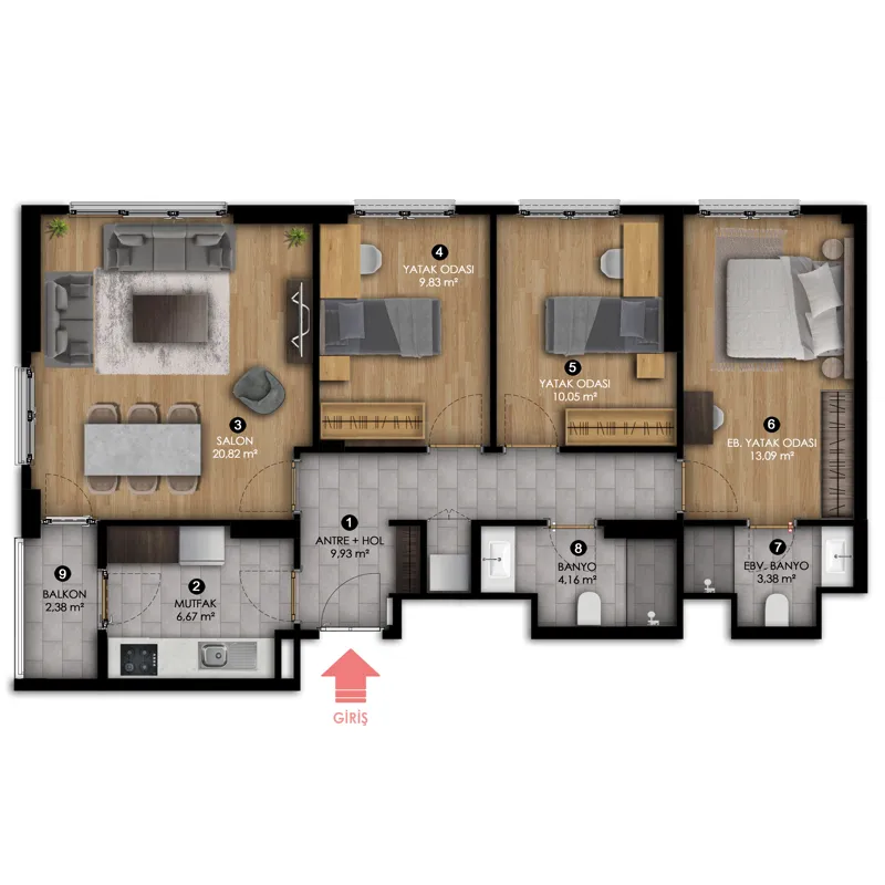 The project, one of the new real estate projects in Istanbul, attracts attention with its location. It is located near many shopping centers, educational and health institutions. This way, everything you need will be right at your fingertips! The project is just one minute away from bus stations and metro stations. In addition, it is 16 minutes away from the Metrobus. The living area is 3 minutes away from Istanbul Atlas and Altinbas Universities, 7 minutes away from Kanuni Sultan Suleiman Hospital, and 27 minutes away from Acibadem Atakent Private Hospital. This location also hosts popular malls;