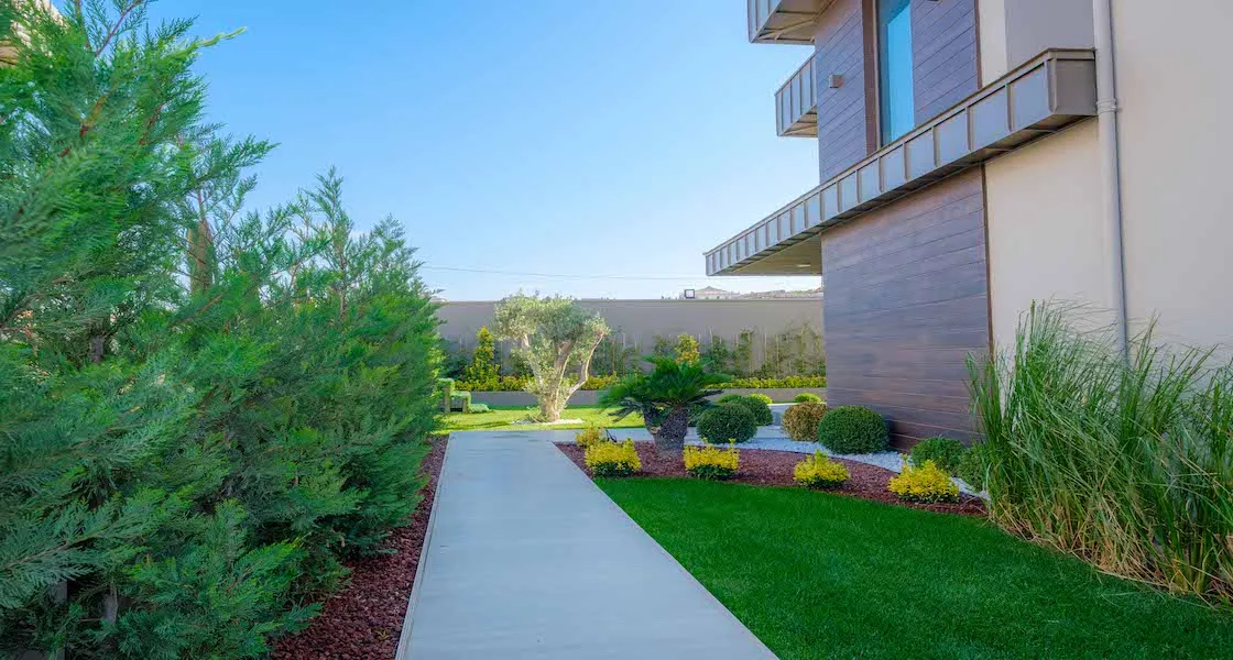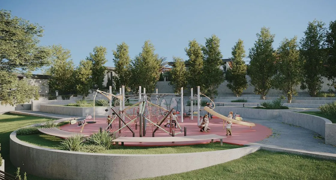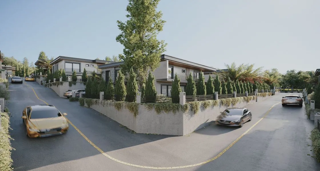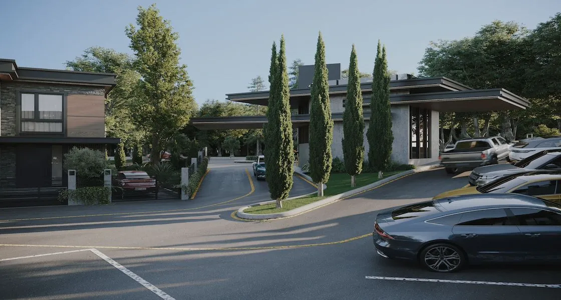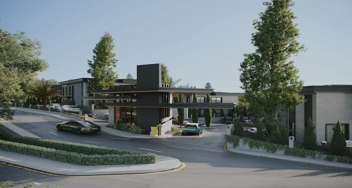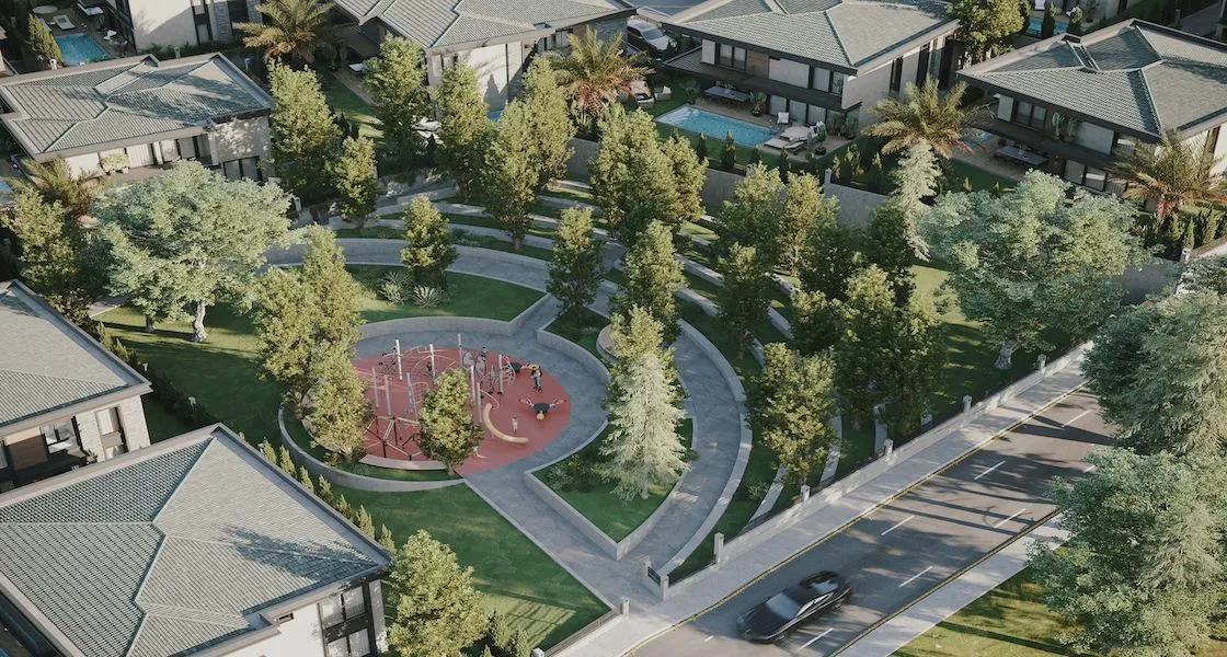 The project features extensive green spaces totaling 7,400 square meters, in addition to gardens and a communal area that includes a playground and an activity space extending over 1,300 square meters, enhancing the quality of life in this upscale residential community.