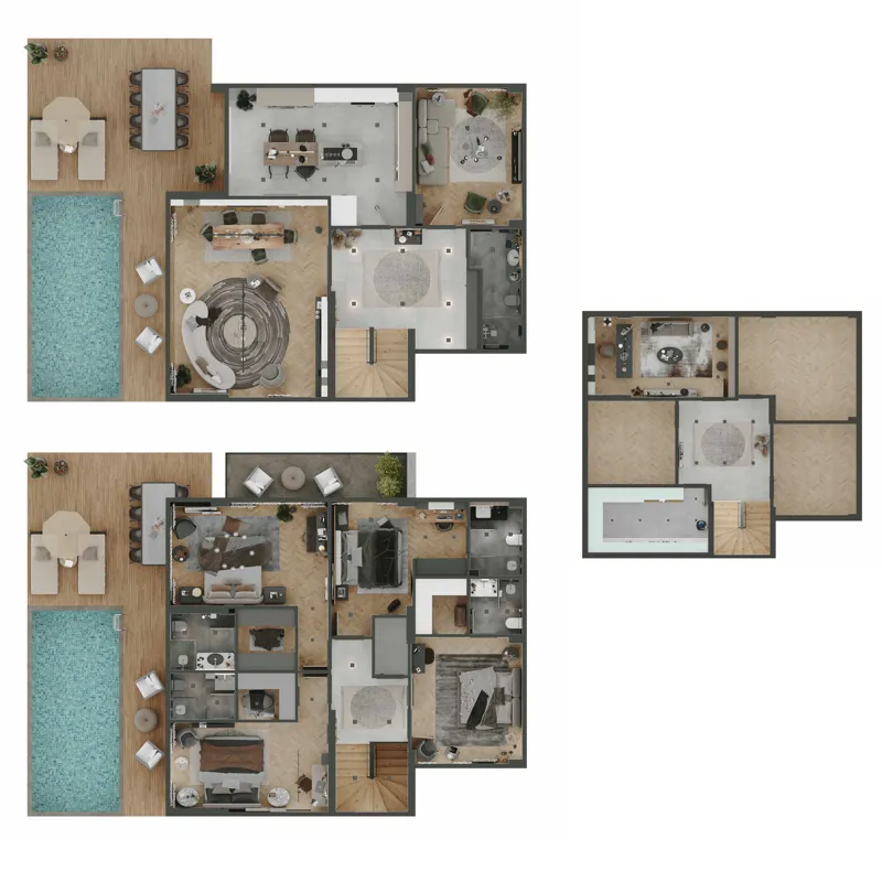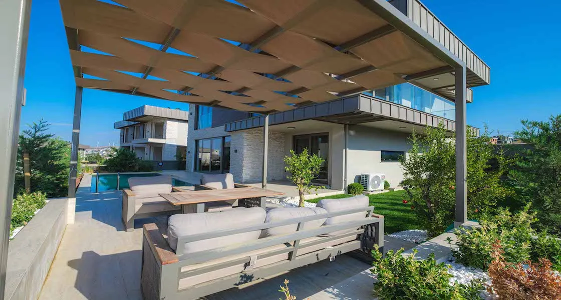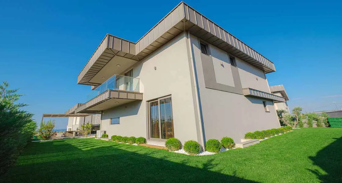Each villa is designed with innovative layouts that include two living rooms and six bedrooms, with an average area of 380 square meters per villa. Each room is equipped with a private en-suite bathroom and a dressing room, reflecting attention to the finest details of comfort. To enhance energy efficiency and respect for the environment, a solar energy infrastructure has been designed, demonstrating a commitment to a sustainable future and a greener lifestyle. The project also offers a heated private pool within the complex, featuring a modern architectural design that harmonizes with contemporary lifestyles. The villas are equipped to the highest quality standards, utilizing HÜPPE branded shower systems, integrated kitchen appliances from FRANKE, as well as NEOLITH porcelain kitchen surfaces and ROCA bathroom sets. Electricity from Panasonic is used to ensure the highest levels of performance. All these features make this project an ideal choice for those seeking excellence and comfort in one of the most beautiful locations in Istanbul.