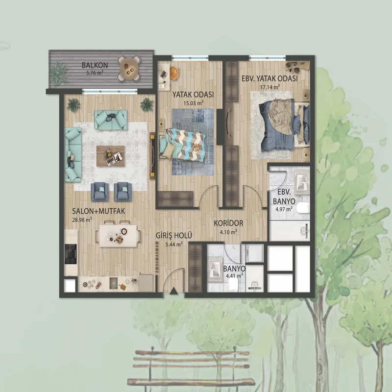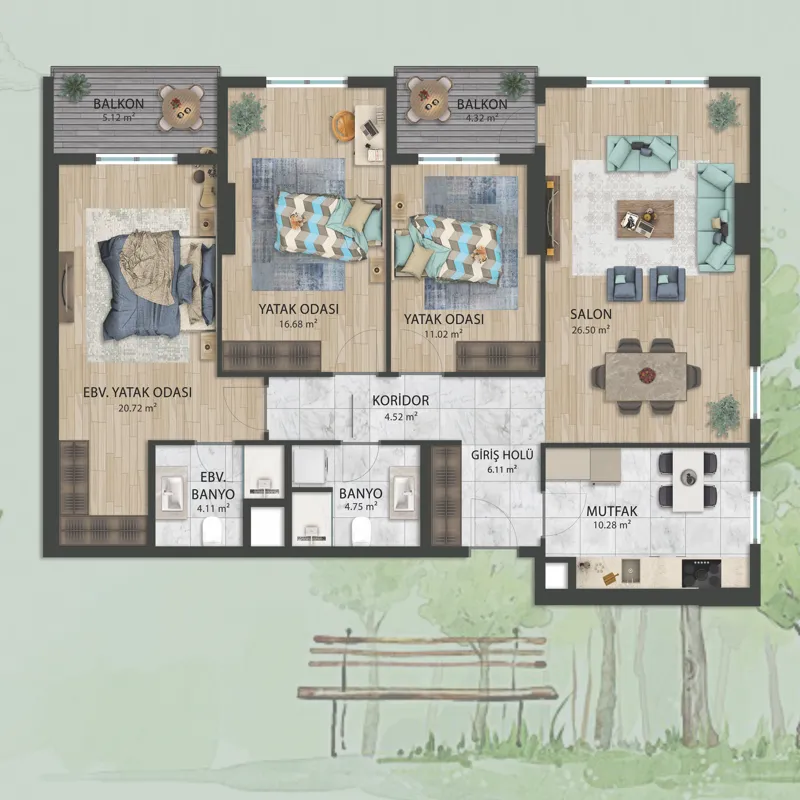The project was built on a land area of 6,500 square meters, and it consists of 2 buildings or residential blocks with a height of 5 floors, so that the total number of apartments available for sale in it is 110 properties or apartments for sale and 32 shops that meet the needs of the population, in which they are located Currently, apartment options start from 1 + 1 to 6 + 1, with areas ranging from 70 to 287 square meters.