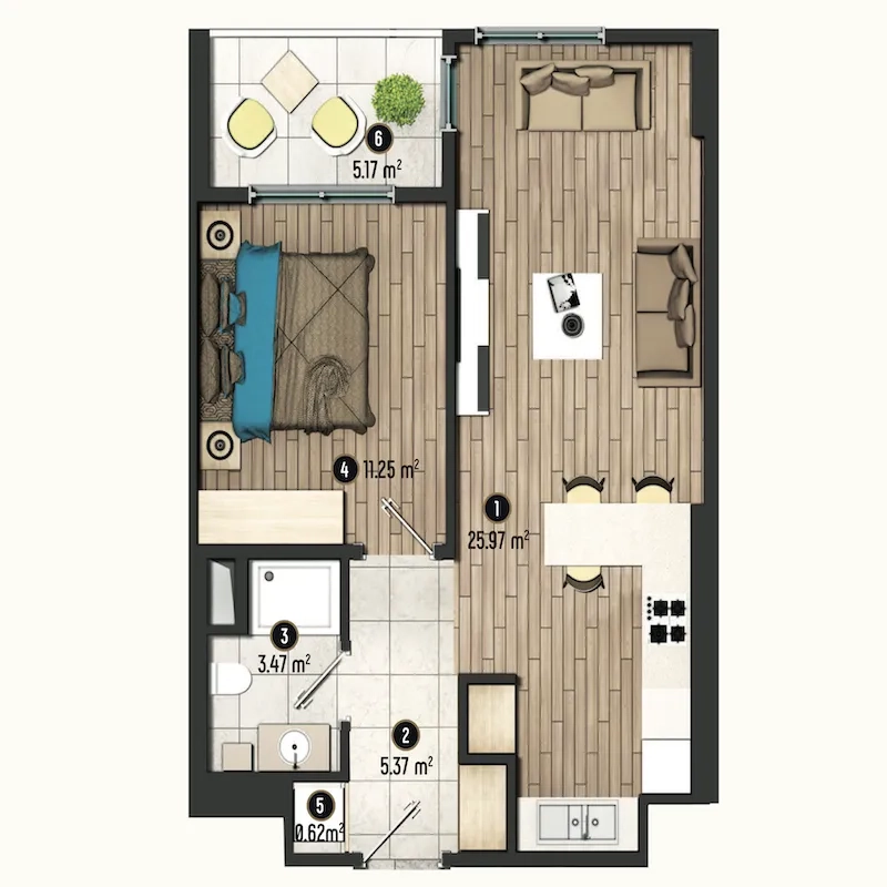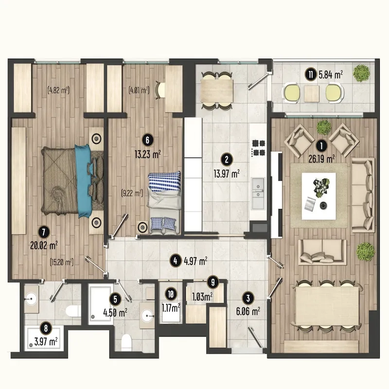 The space within the apartments offered for sale in the project has been taken into account to suit all tastes and families.