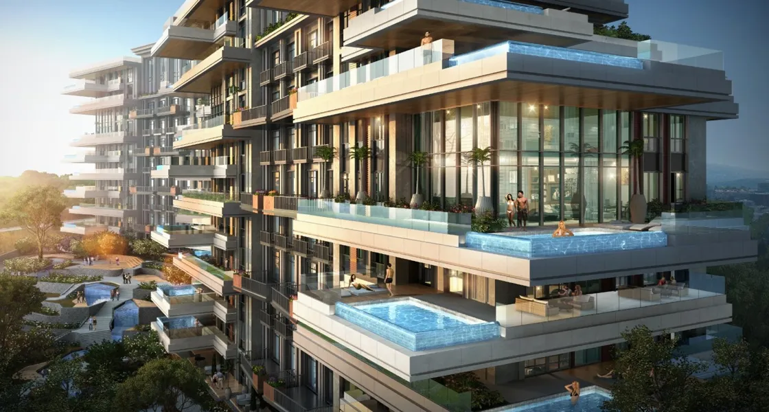 This project was built on a land area of 24,000 square meters, and it consists of 6 buildings or residential blocks with a height of 12 floors, so that the number of apartments in it is 160 residential properties, and there are currently options of apartments starting from 2 + 1 to 5 + 2 with spaces Starting from 155 up to 653 square meters.