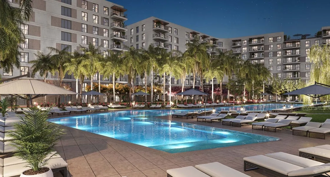• The apartment layouts feature different options based on the various building designs, with some apartments including terraces and private swimming pools.