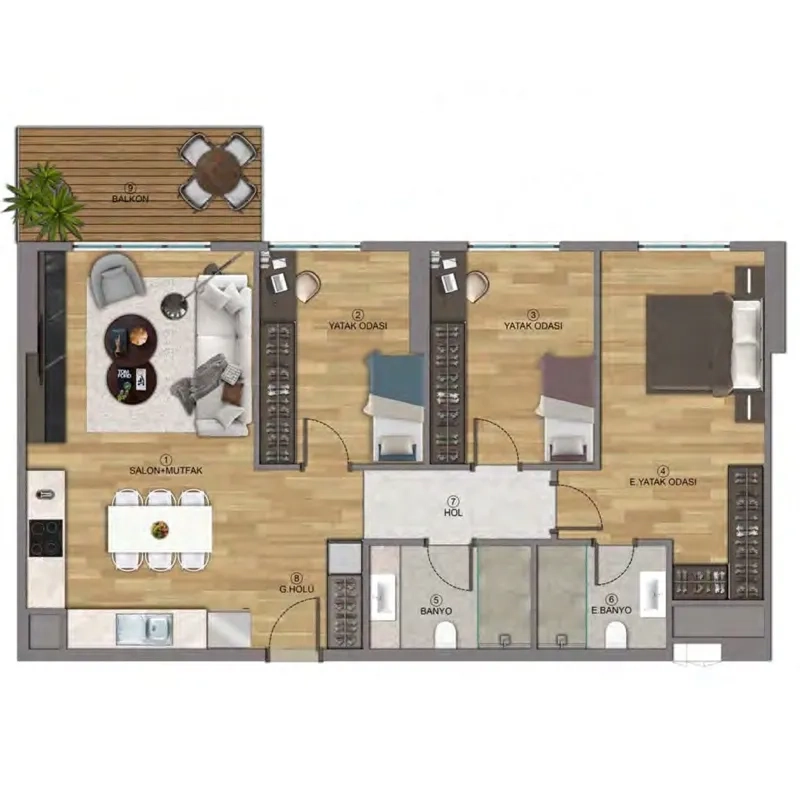 This project serves as an integrated residential complex filled with luxury and social life, part of the residential developments in Antalya, implemented by the largest leading Turkish companies. The project is on a land area of 64,108 square meters and includes 1,437 regular and duplex apartments with styles and options ranging from 1+1 to 5+1, with sizes varying from 67 to 225 square meters. These diverse sizes cater to all families, offering social facilities that are rarely found in one location, high-quality finished apartments, and an investment environment that promises many opportunities in this giant project.