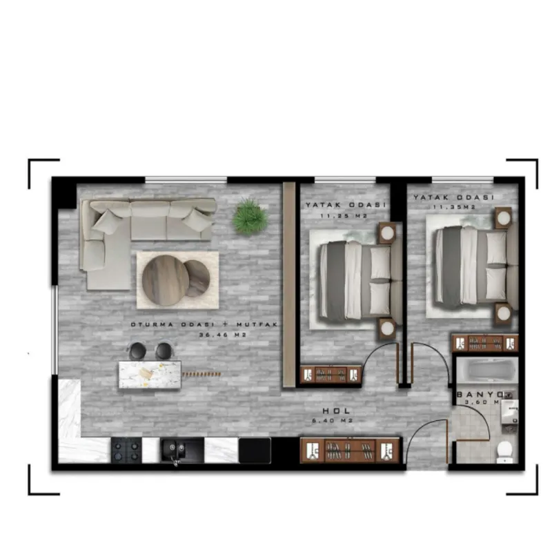 The total area of the project is 3055 square meters, and it consists of 2 buildings or residential blocks with a height of 8 floors, and it includes 91 apartments or real estate offered for sale in Istanbul, in which there are currently apartments starting from 1 + 1 to 2 + 1 with areas ranging from 81 to 147 Square meters . The project offers comfortable and spacious interiors in apartments that are created by combining high-quality and aesthetic materials.