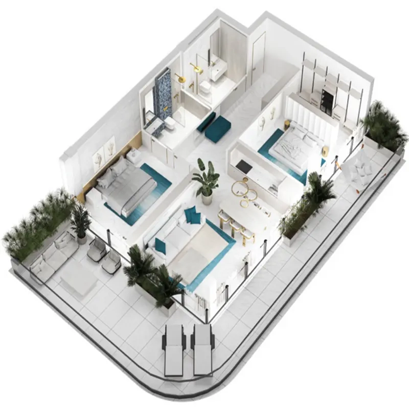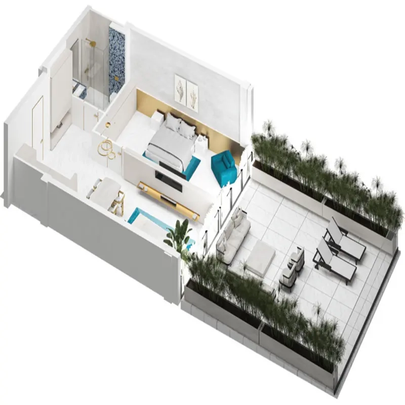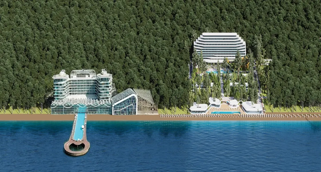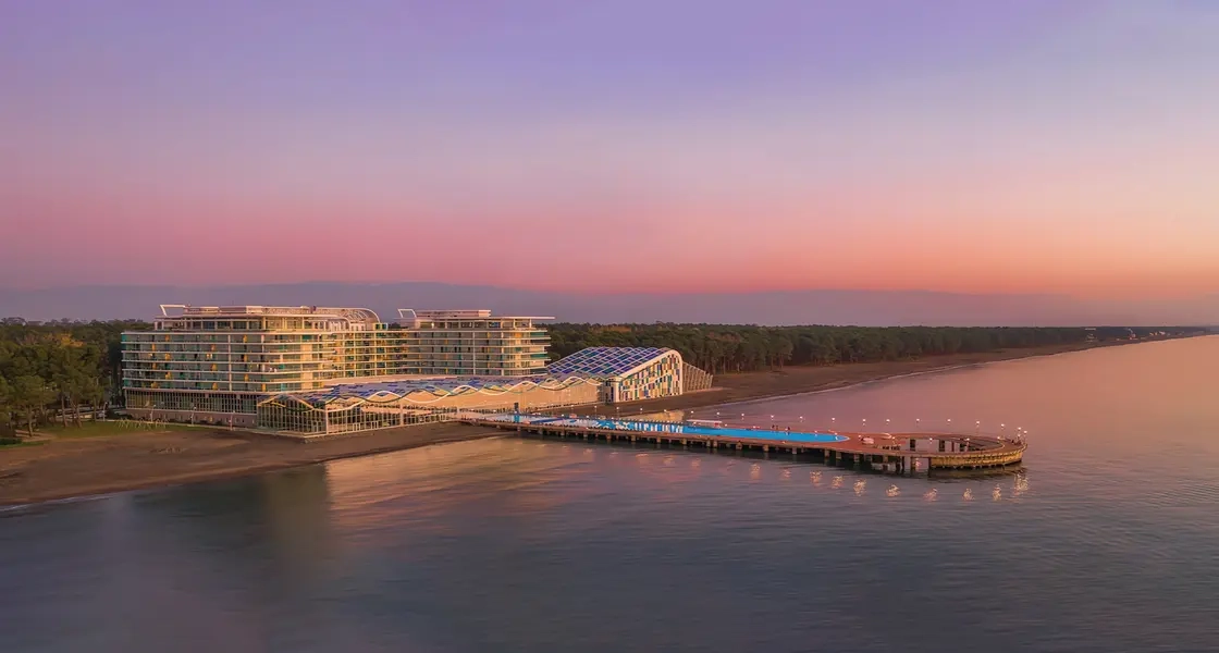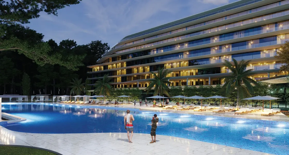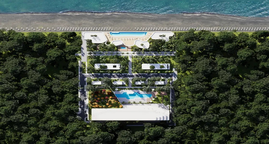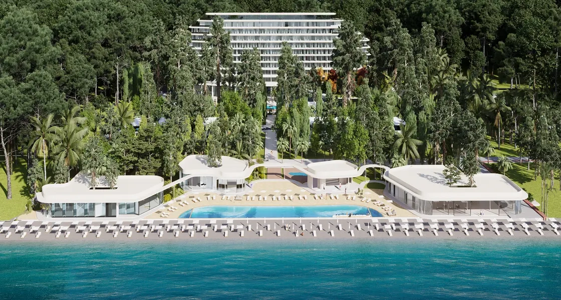 This tourism real estate project in the Black Sea region of Georgia, adjacent to the luxurious Paragraph Hotel, represents an innovative and unprecedented development. Spanning an area of 40,000 square meters and capitalizing on the region's unique climate, it is an attractive destination for both investors and tourists. The project features a private sandy beach and a pine forest, and is located close to various recreational and cultural facilities. It is being implemented in five phases, with the first phase currently showing significant progress in the construction of an 11-story building on an area of 5,500 square meters. This building offers fully furnished residential units ranging from 43 to 385 square meters, in addition to a variety of luxurious amenities.