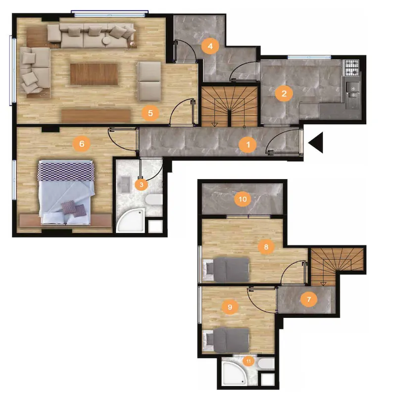 The project was built on a land area of 1,600 square meters and consists of one building or residential block with a height of 9 floors, so that the total number of apartments in it is 36 apartments or residential properties. There are currently options of apartments starting from 2+1 up to 3+1 with areas starting from From 120 to 162 square meters.