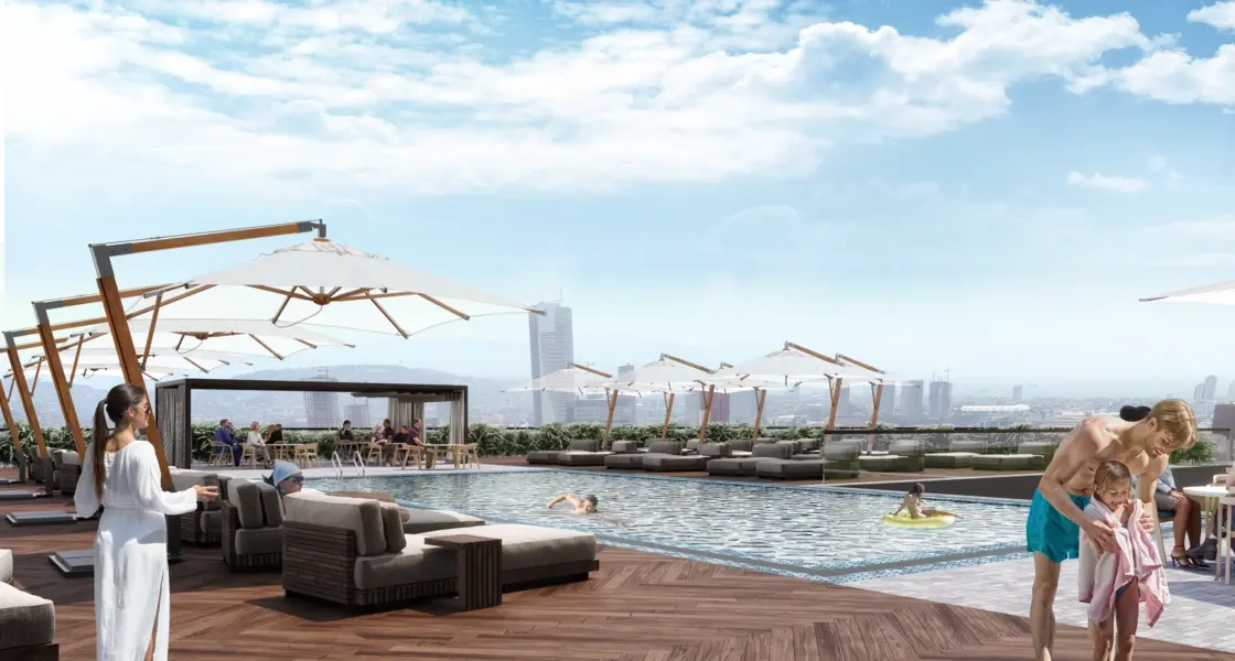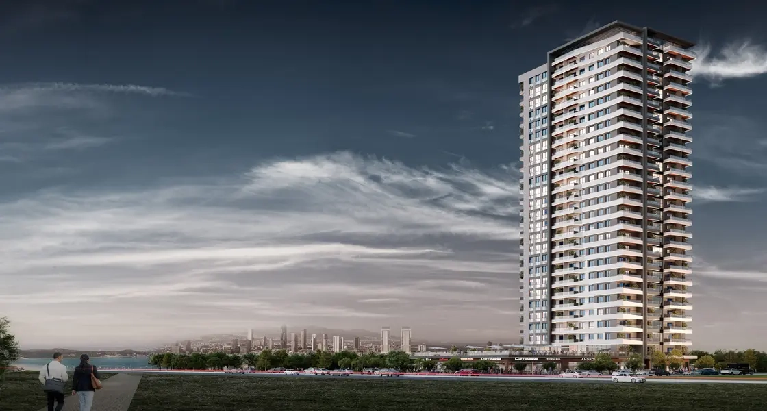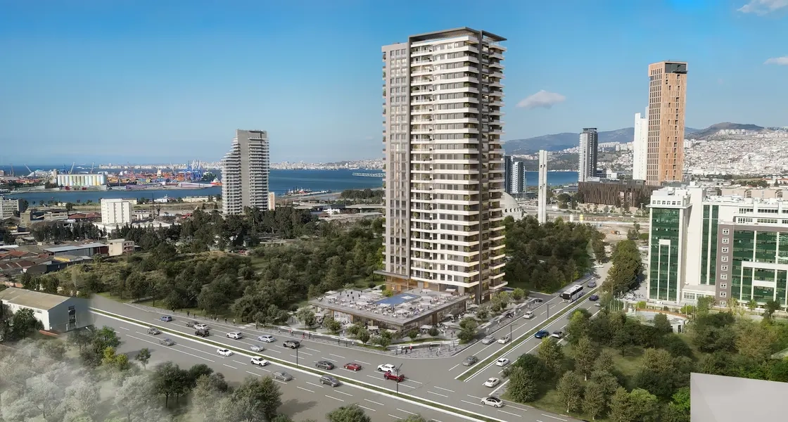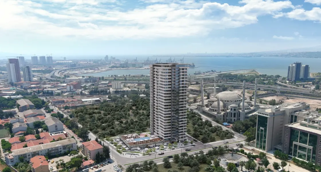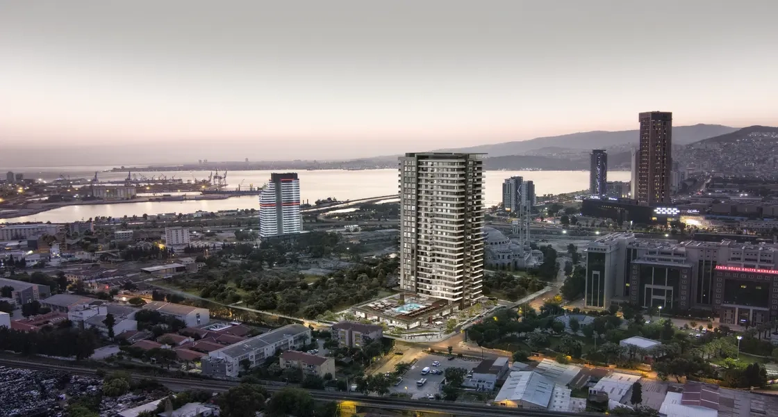 This project is located in the heart of Izmir, specifically in the Konak area. It is one of the residential projects being launched in this magnificent city, adding a touch of luxury and elegance to the area. This new project consists of a single residential block built on a land area of 5,000 square meters, featuring 26 floors and containing 226 residential units or apartments for sale in Izmir, designed for families. This enhances the importance of providing an ideal living environment that combines comfort and luxury. The available residential options vary, including apartments with different sizes and designs ranging from 1+1 to 3+1, with areas starting from 84 up to 212 square meters. Each housing unit boasts stunning panoramic views of the sea and the city, allowing residents to enjoy the beauty of the breathtaking landscapes at all times. The innovative design of the project and the high-quality materials used reflect a commitment to providing a distinguished lifestyle that combines luxury with comfort, making it an ideal destination for families looking for a home that integrates luxury and a strategic location in the heart of Izmir.