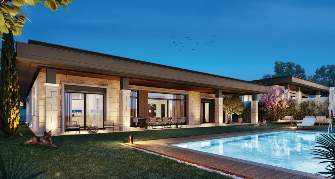 The project was built on a land area of 41,000 square meters, and it consists of 32 one-storey villas of great beauty, splendor and elegance. You have two choices of villas, either a 5 + 1 or 6 + 1 villa with areas ranging from 500 to 915 square meters.
