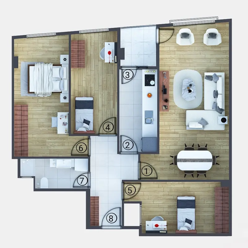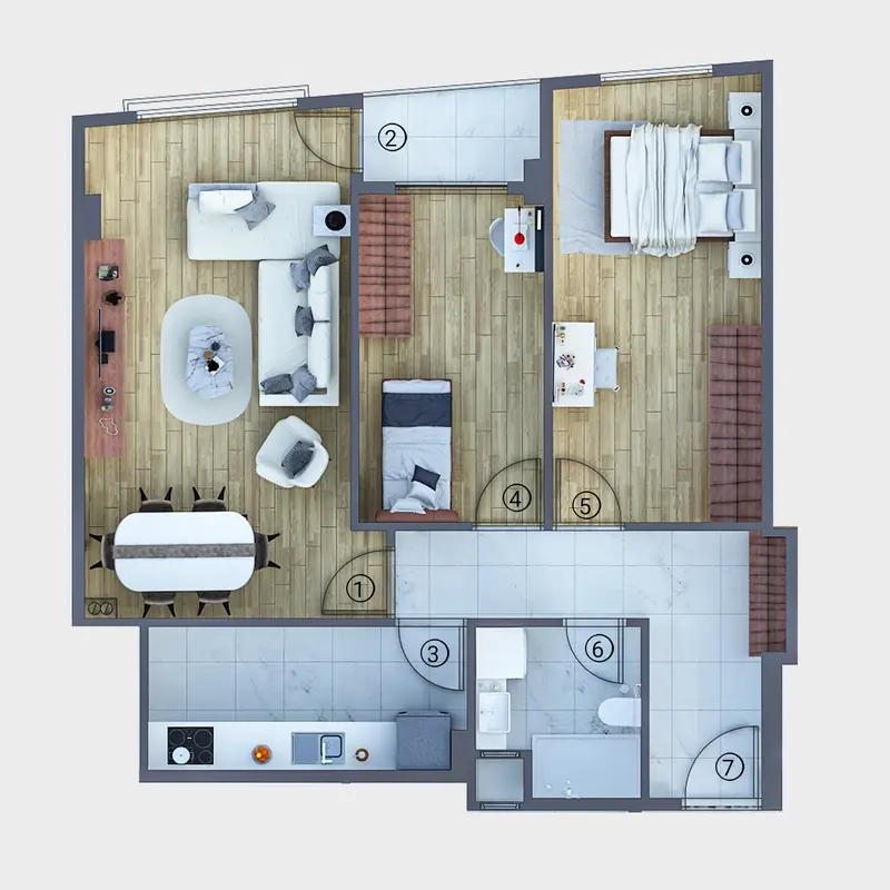 The project was built on a land area of 25,182 square meters. It consists of 2 buildings or residential blocks with a height of 6 floors, so that the total number of apartments in it is 186 residential properties. There are options from 1+1 to 4+1 apartments with areas starting from 50. Up to 302 square meters, there are also options for duplex apartments for sale.