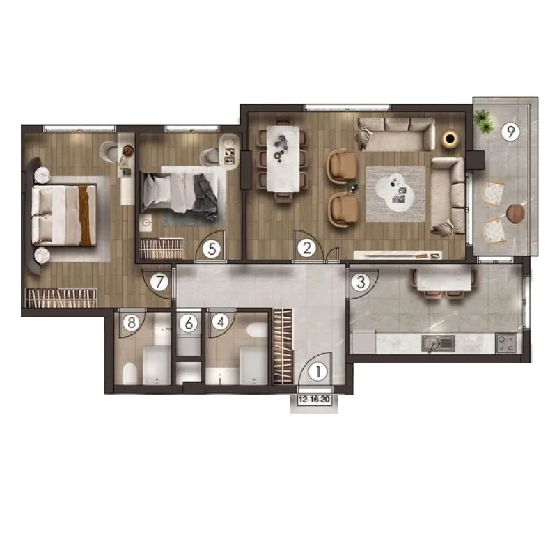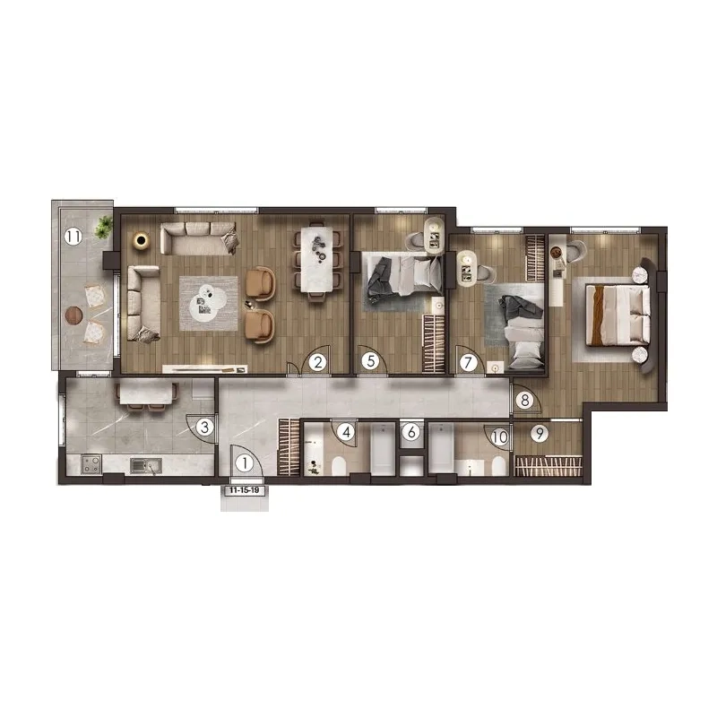 The project was built on a land area of 3630 square meters, and consists of 3 residential buildings with a height of 7 floors for each building, so that the number of residential apartments in it is 61 apartments for sale with the option or style of apartments starting from 2 + 1 to 5 + 2 and with areas starting from 90 to 323 square meters. The project also offers duplex apartment options in Beylikduzu with different styles and areas that meet all the desires of investors.