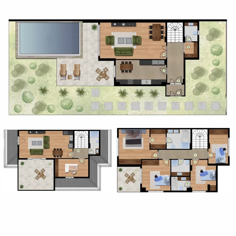 Proje 7200 metrekare arsa alanı üzerine inşa edilmiş olup, alanları 480 ila 540 metrekare arasında değişen 5+2 seçenekli 22 adet villadan oluşmaktadır. Her villanın bahçesi ve özel yüzme havuzu bulunmaktadır: